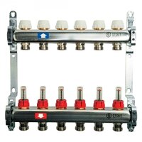 Коллекторная группа STOUT - 1" на 5 контуров 3/4" (расходомеры, клапананы, сливные краны)