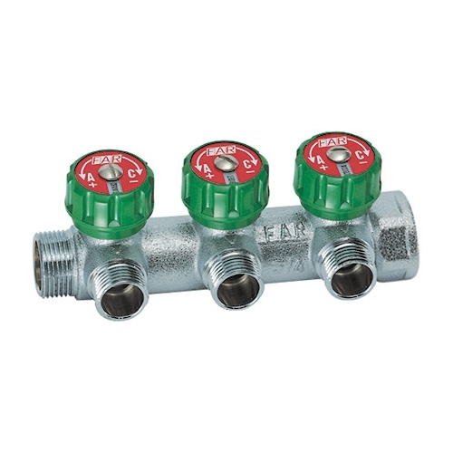 Коллектор проходной регулируемый FAR Multifar (3822 3412) 3/4" ВР-НР, 3 отвода 1/2" евроконус