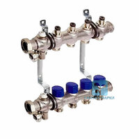 Коллекторная группа Elsen 1" с вентилями, 4 отвода 3/4"