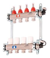Коллектор Uni-Fitt 1"х3/4" 4 вых. с расходомерами и термо вентилями, нерж. сталь