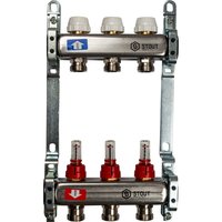 Коллекторная группа STOUT - 1" на 2 контура 3/4" (клапананы, сливные краны, нерж. сталь)