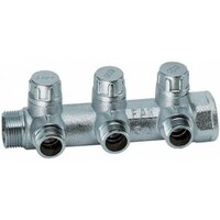 Хромированный проходной коллектор FAR 3/4" с наружной резьбой, 4 отвода (1/2"EU)