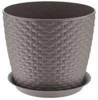 Кашпо Idea "Ротанг", с поддоном, цвет: коричневый, 1 л