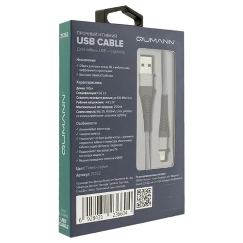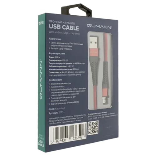 Кабель Qumann USB - Lightning 1 м