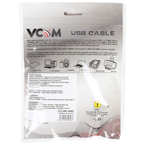 Удлинитель VCOM USB - USB (VUS6936) 2 м