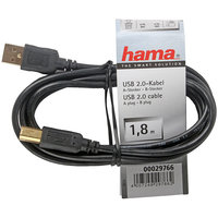 Кабель USB 2.0 A(m)-В(m) Hama позолоченные штекеры, 1.8m, черный (H-29766/00029766)