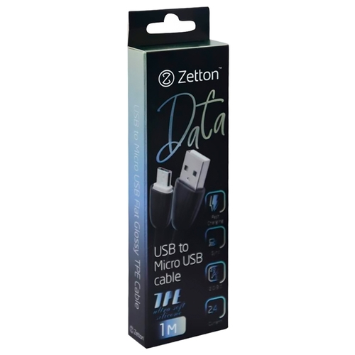 Кабель Zetton Flat Glossy USB - microUSB 1 м