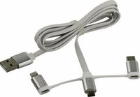 Дата-кабель Smartbuy iK-312 USB - 3 в 1 Micro + Type C + 8 pin, белый, 1,2 м