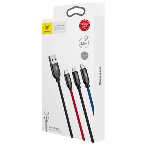 Кабель Baseus Three Primary Colors Series 3 в 1 USB - microUSB/USB Type-C/Lightning (CAMLT) 0.3 м