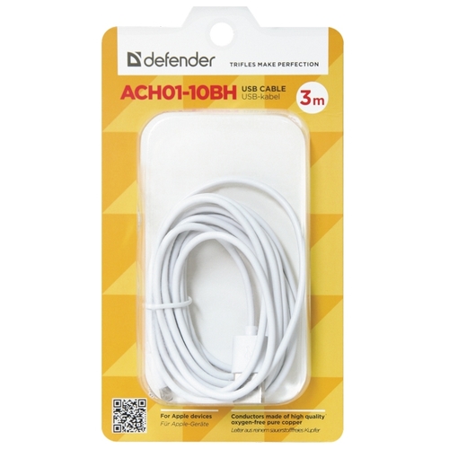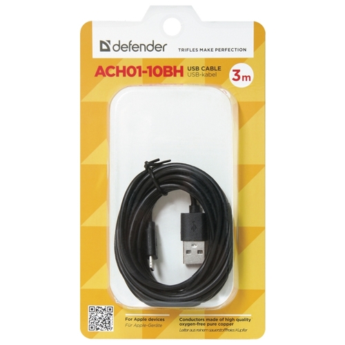 Кабель Defender USB - Apple Lightning (ACH01-10BH) 3 м