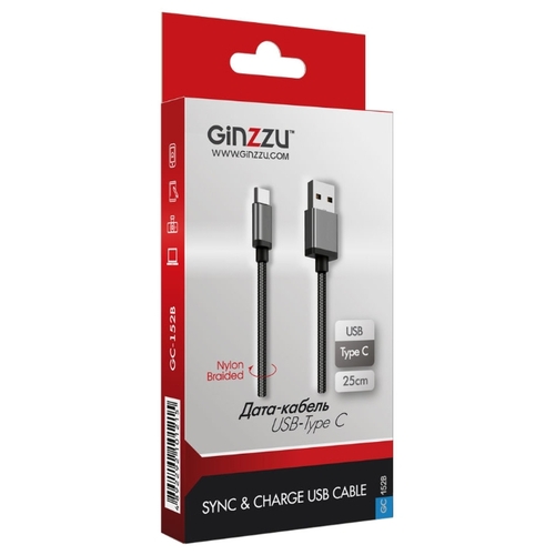 Кабель Ginzzu USB - USB Type-C (GC-152B) 0.25 м