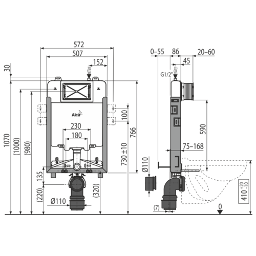 Рамная инсталляция AlcaPLAST AM1115/1000 Renovmodul Slim