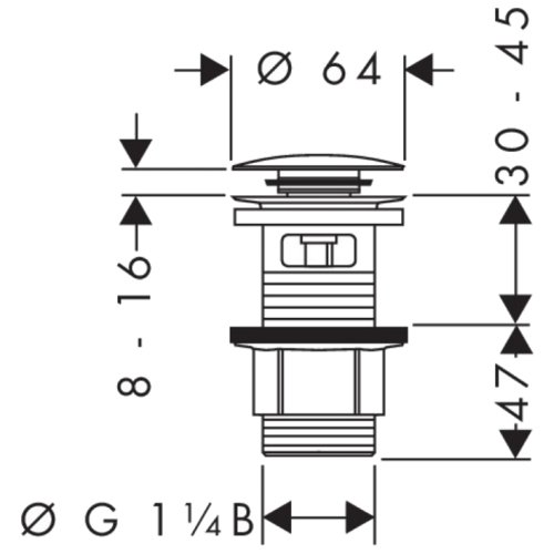 Донный клапан полуавтоматический для раковины Hansgrohe 50105000