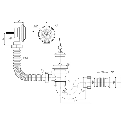 Донный клапан полуавтоматический для раковины RAVAK X01439