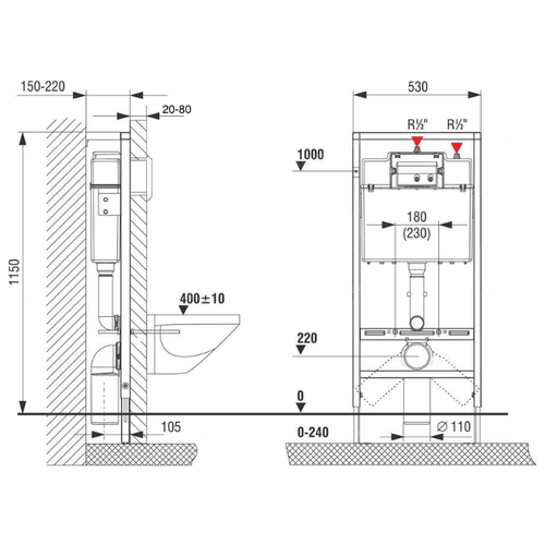 Рамная инсталляция Roca Active WC A890110015+Plate 32B A8901130B1