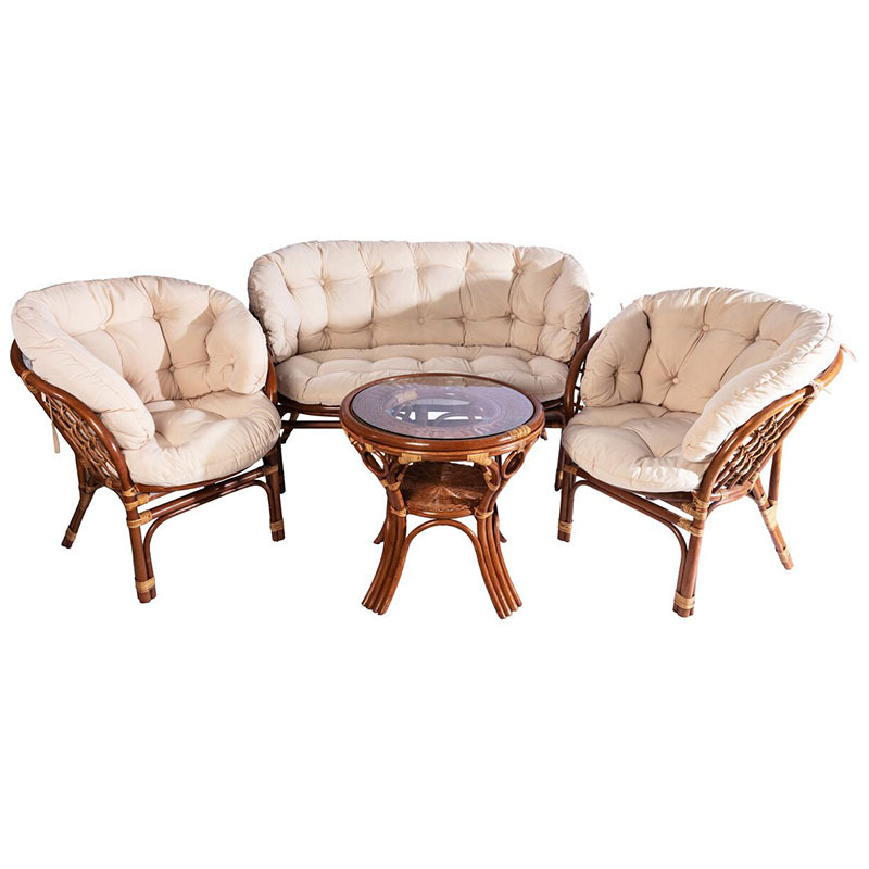 Комплект садовой мебели: Набор мебели 4 предмета, натуральный ротанг, коричневый