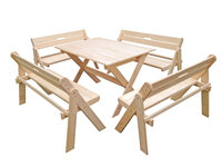 Комплект садовой мебели "на 8-10 человек" складной деревянный (Стол, 4 Скамейки)