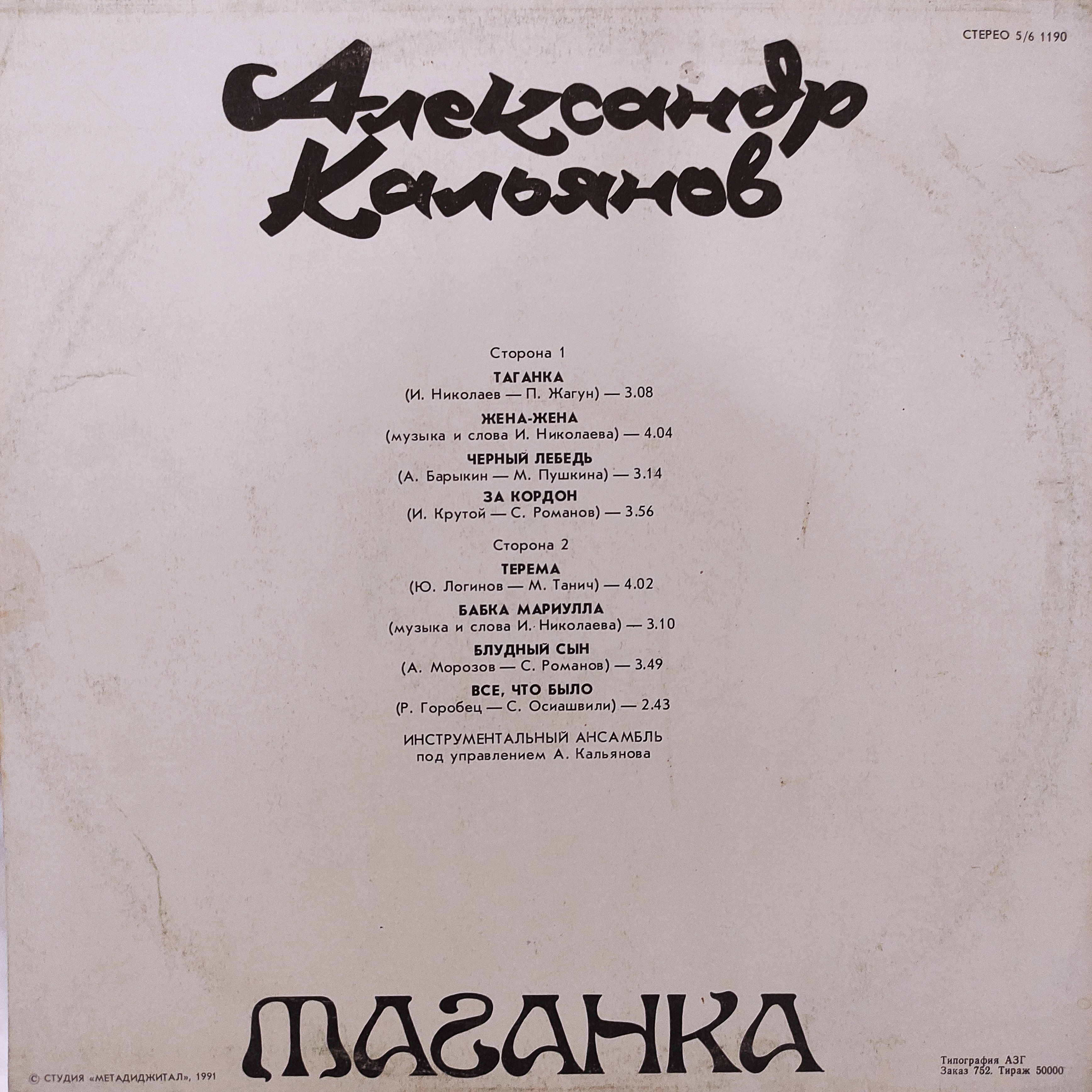 Виниловая пластинка. Александр Кальянов: "Таганка". Отл. сост.