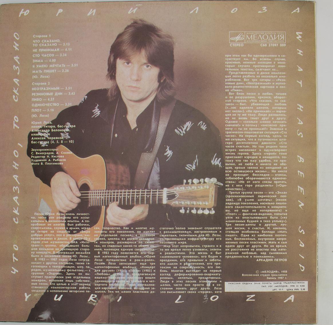 Юрий Лоза - Что сказано, то сказано (LP)