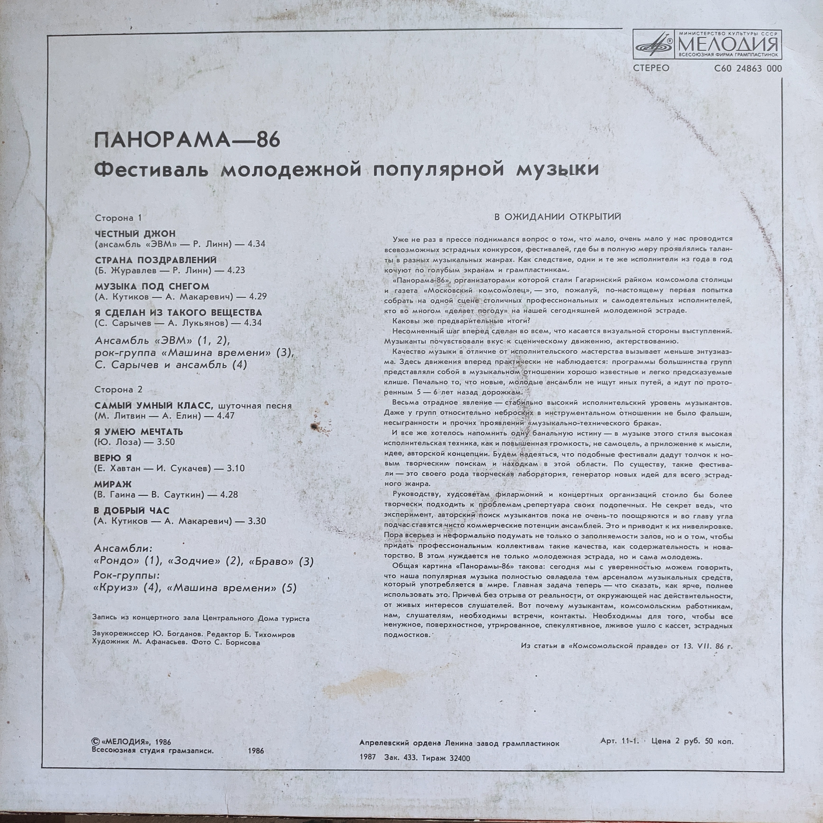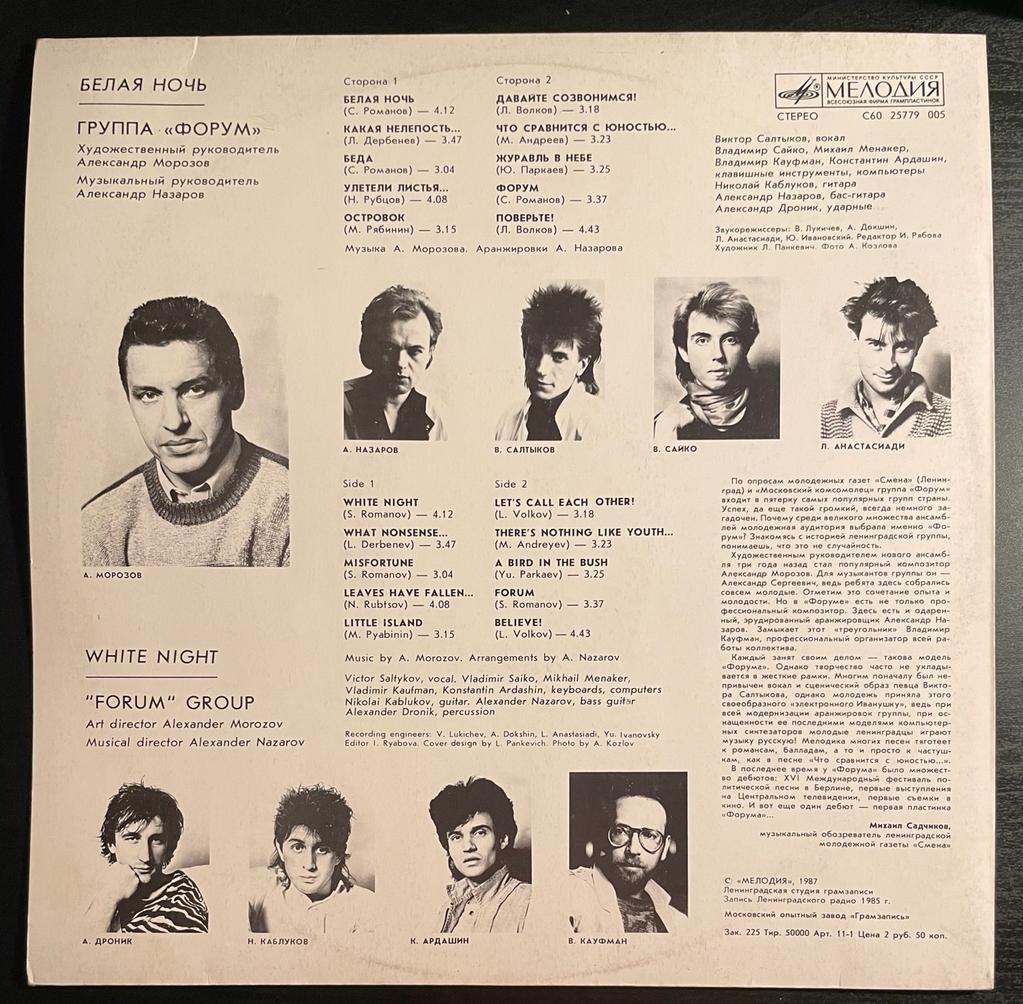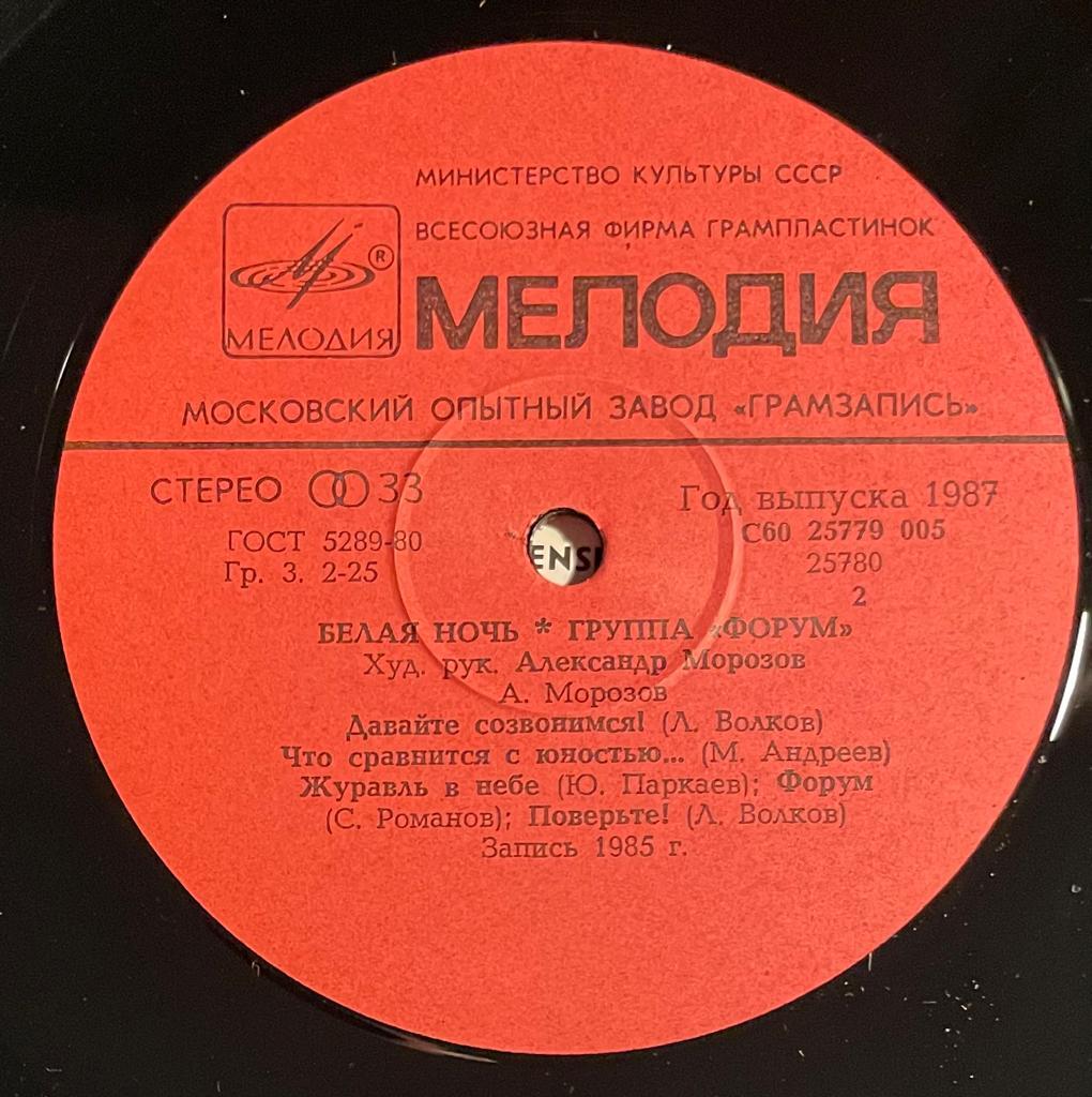 Форум - Белая ночь (1987г.) пластинка LP