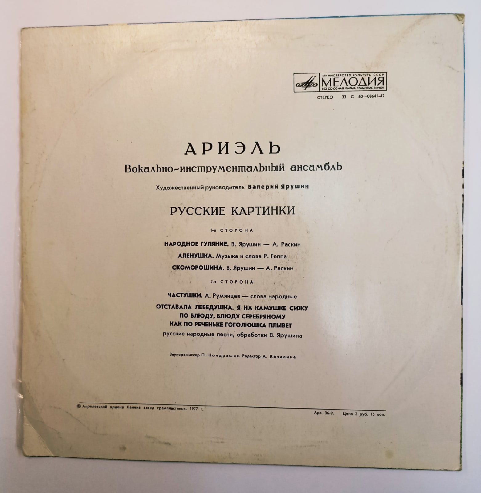 Виниловая пластинка К. М. Новикова Елена Петкер - Кукарачча малиновая шаль, - 10'