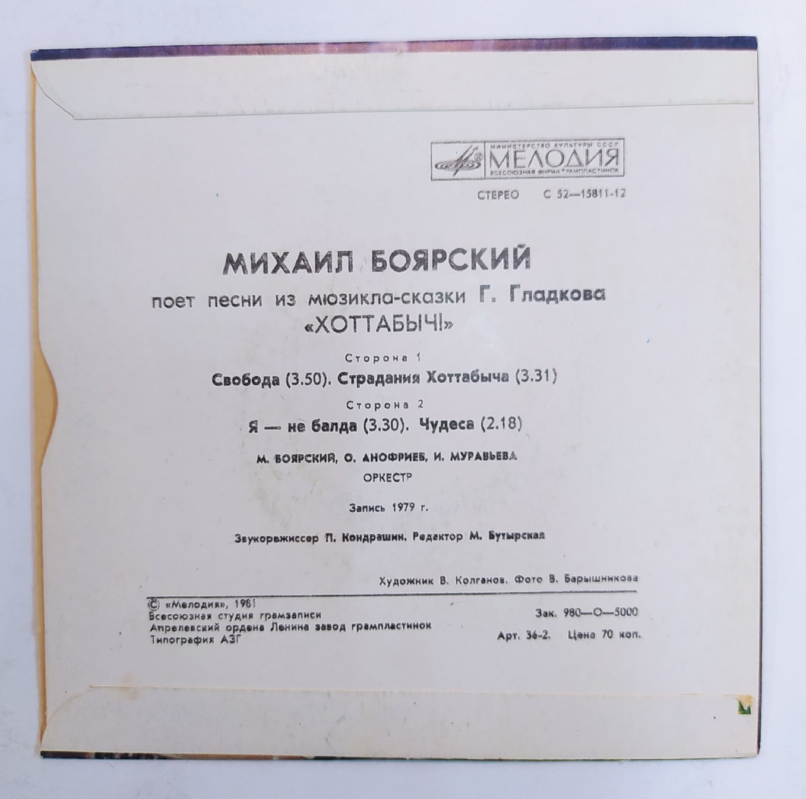 Михаил Боярский Михаил Боярский Поет Песни Из Мюзикла Г. Гладкова Хоттабыч 7 дюймов
