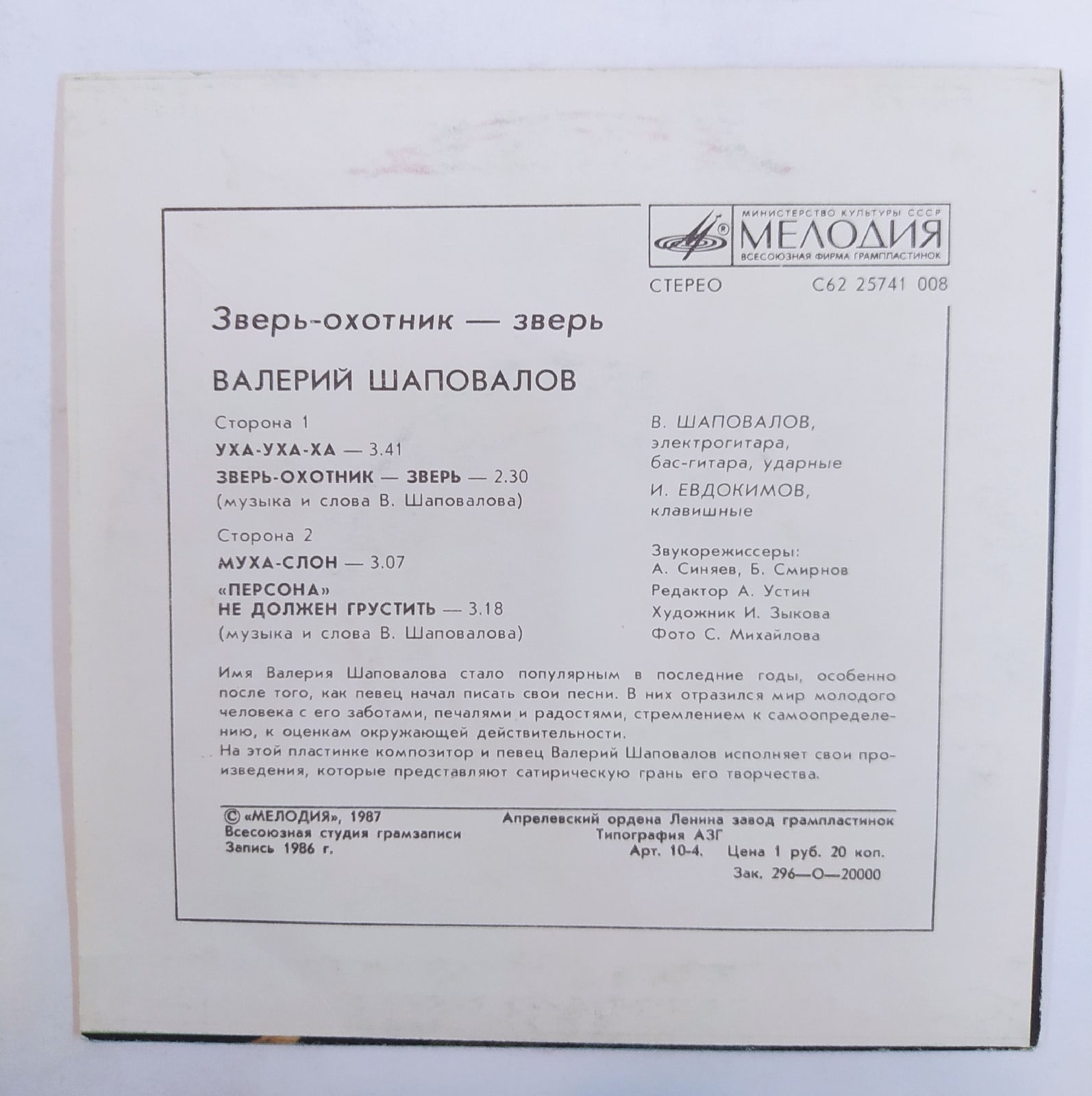 Виниловая пластинка винтажная Валерий Шаповалов Зверь Охотник Зверь