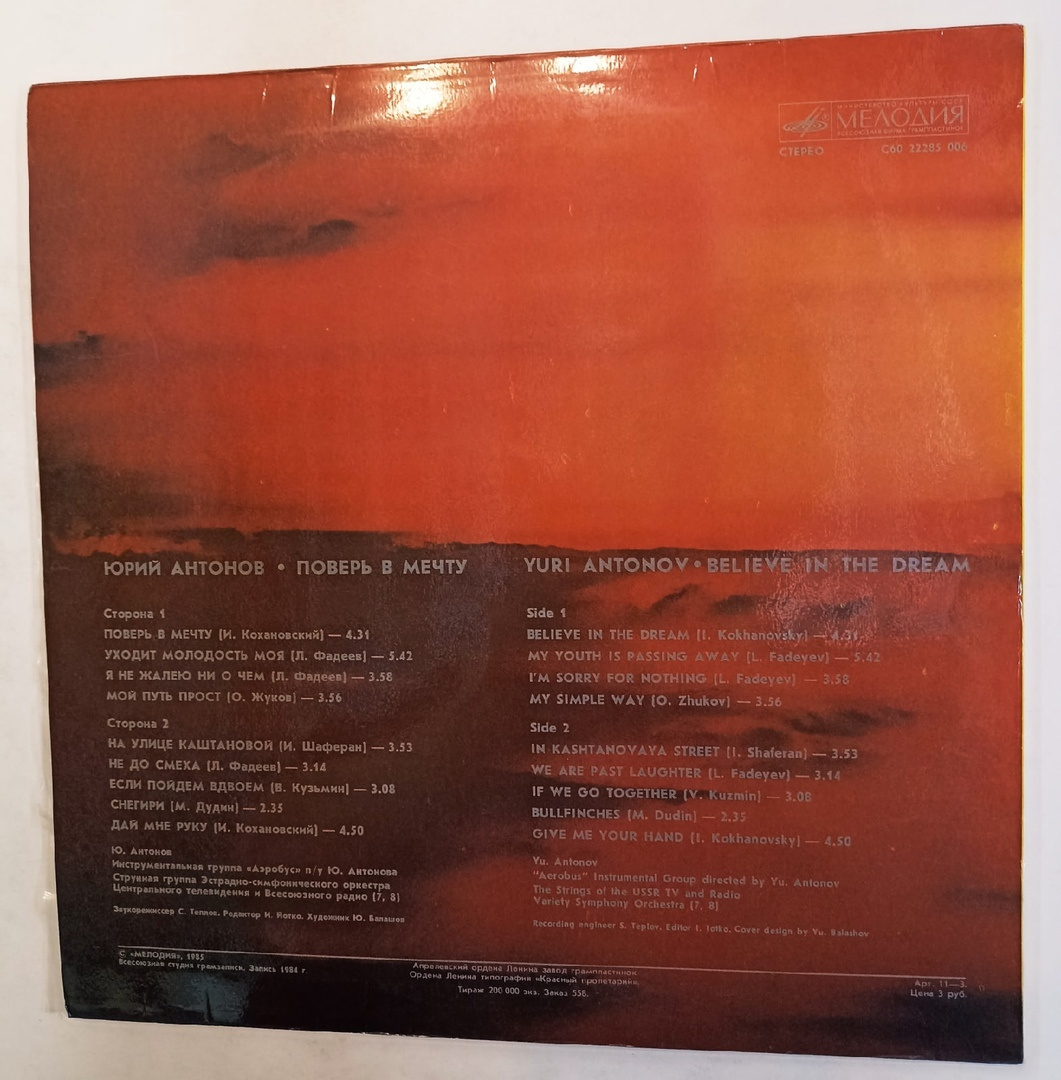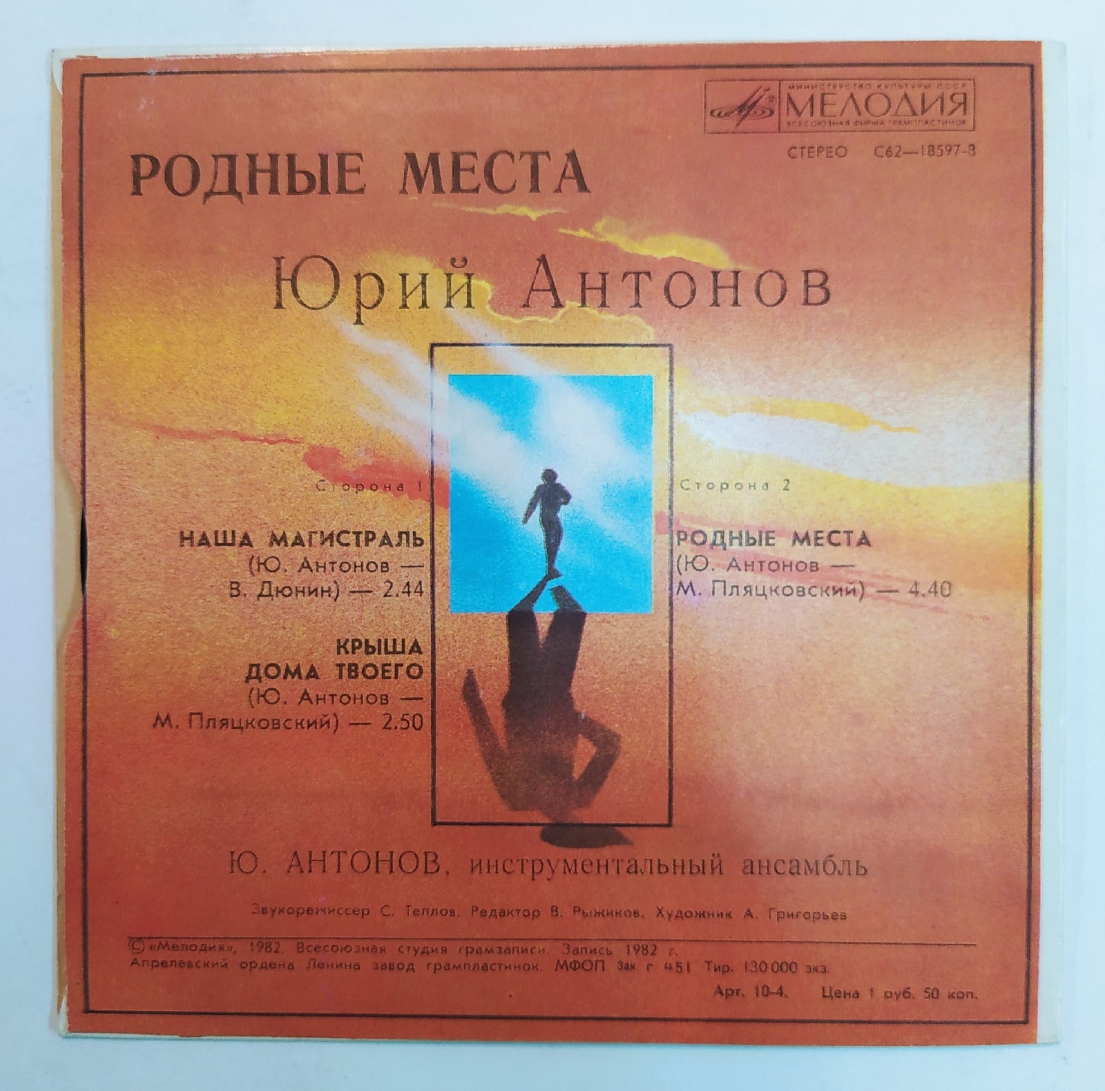 Виниловая пластинка винтажная Юрий Антонов Родные Места 7 дюймов