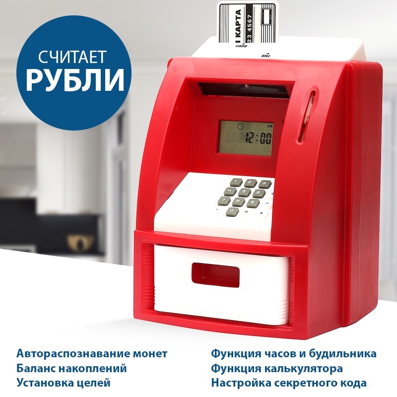 Копилка-сейф для денег / электронный банкомат с купюроприемником и кодовым замком, синий