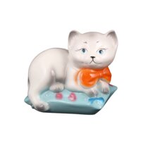Копилка Котик на подушке 18х16 см серая оранжевый бант зеленая подушка (Копилки)