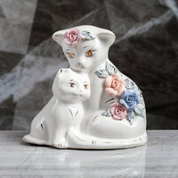 Копилка "Кошка с котенком" глянец белая лепка