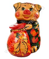 Копилка «Хрюшка с мешком». Хохлома