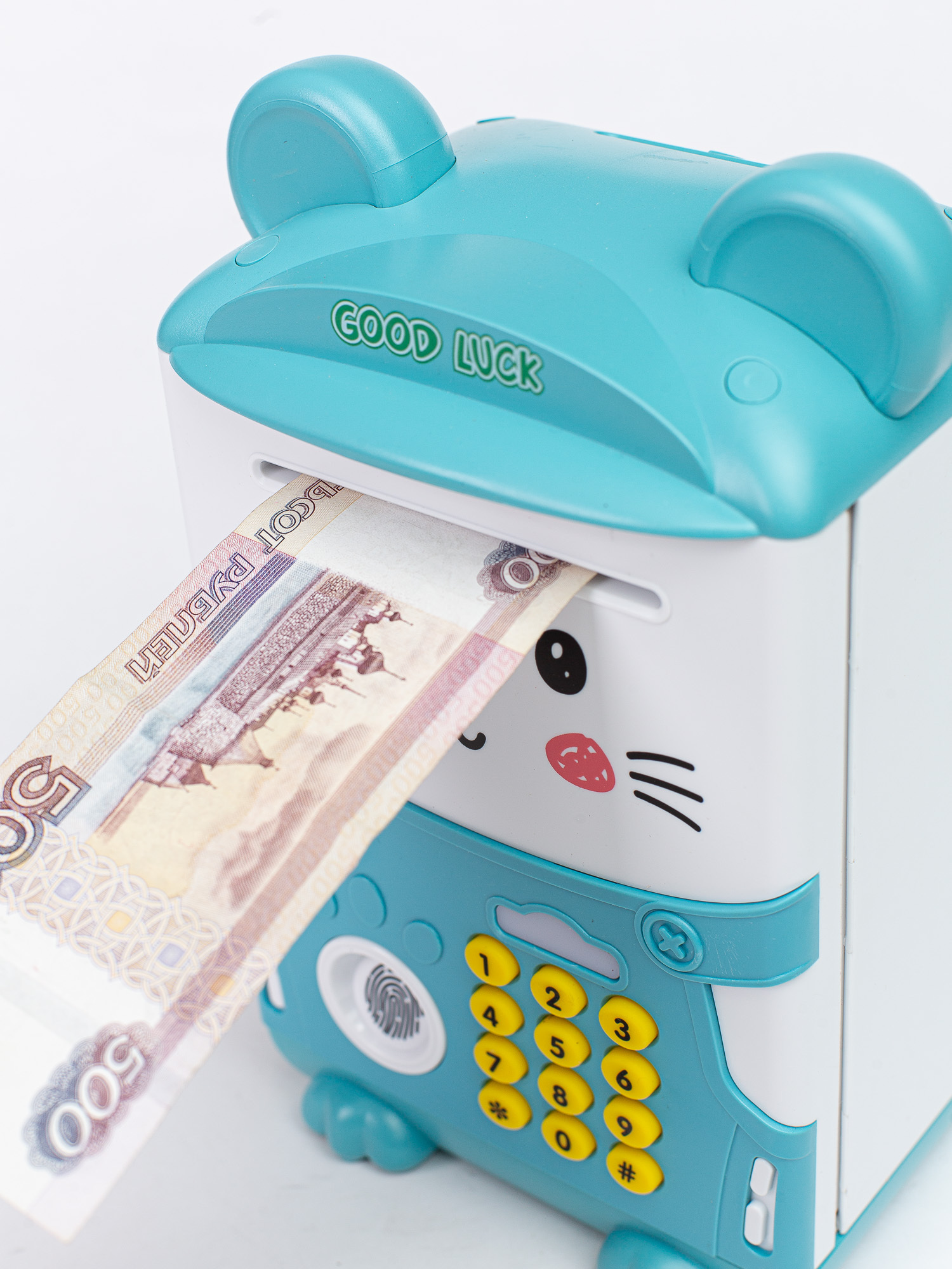 Детская копилка-сейф "Мышка" для денег с кодовым замком и сканером отпечатка пальца