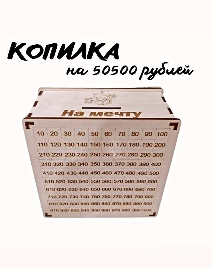 Интерактивная копилка для денег от 10 до 1000 руб, накопи 50500 руб за 100 дней