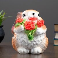 Копилка "Зайка с цветами" бежевая 15х15х17см