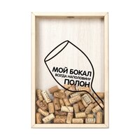 Копилка для винных пробок "Бокал всегда наполовину полон" дуб
