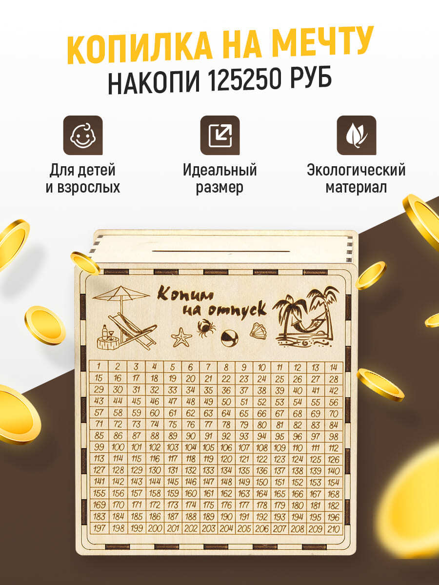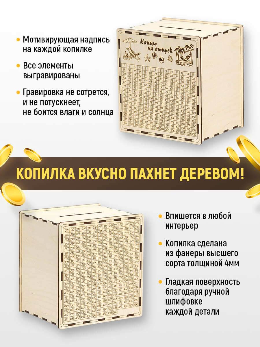 Копилка, Семейный банк для денег "Копим на отпуск", 18х19 см, 1 шт