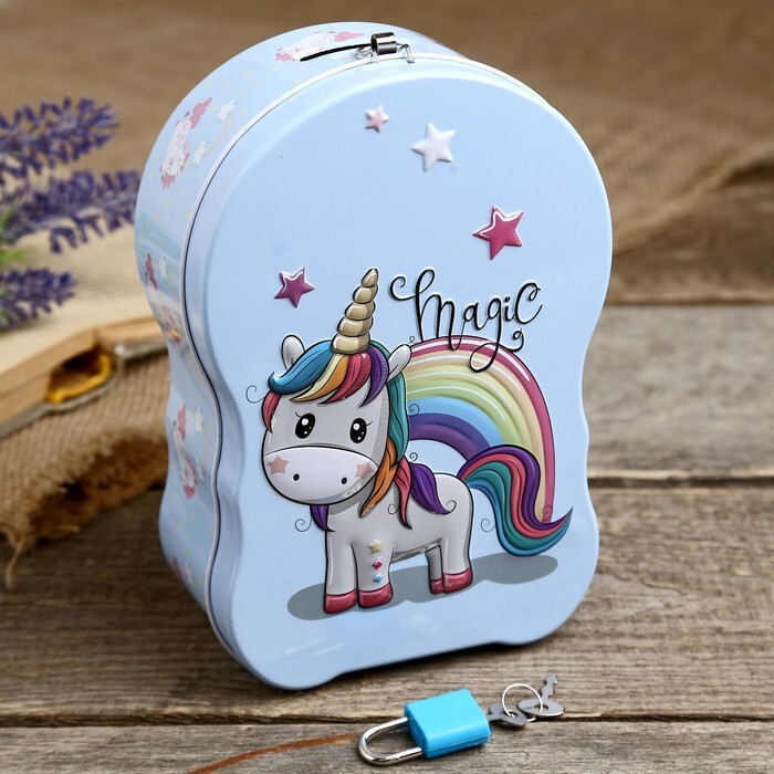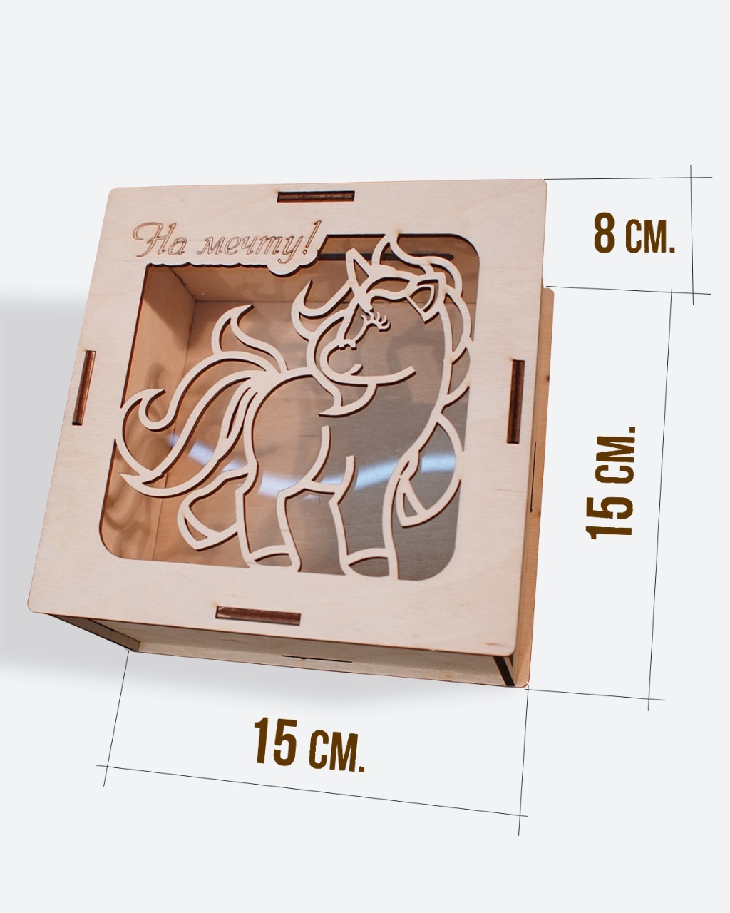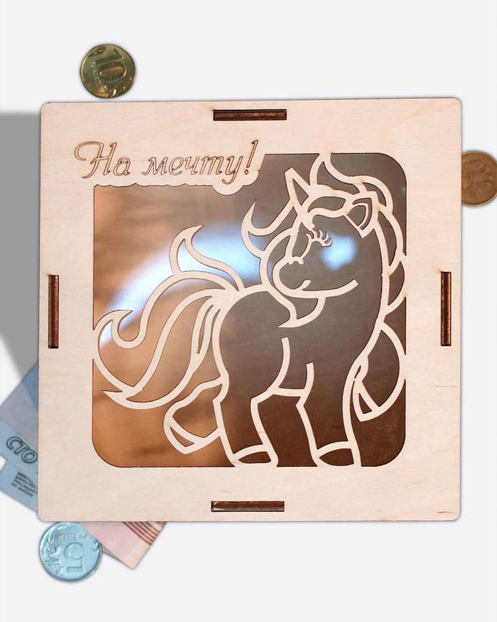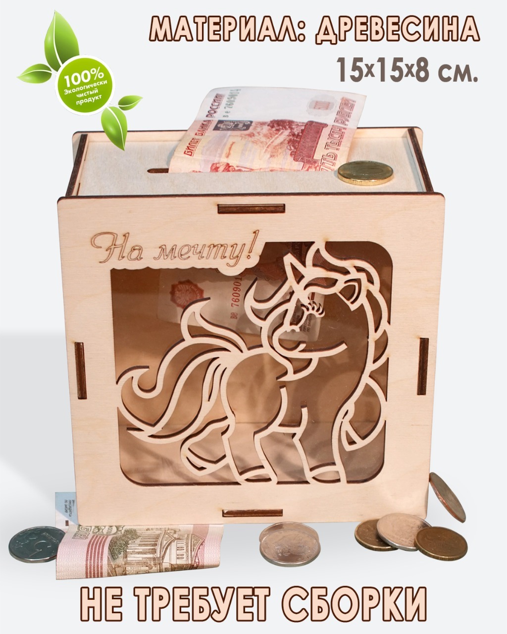 Деревянная сувенирная копилка для денег "на мечту" на подарок с Единорогом детская, разрисуй сам