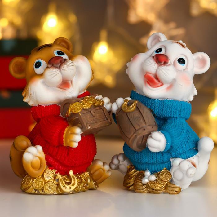 Копилка полистоун "Тигрёнок в свитере с золотыми монетами" МИКС 13х8х8,5 см