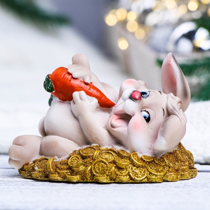 Копилка 'Заяц с морковкой' серый, 10х11см