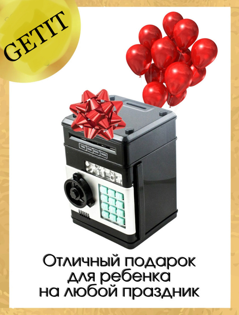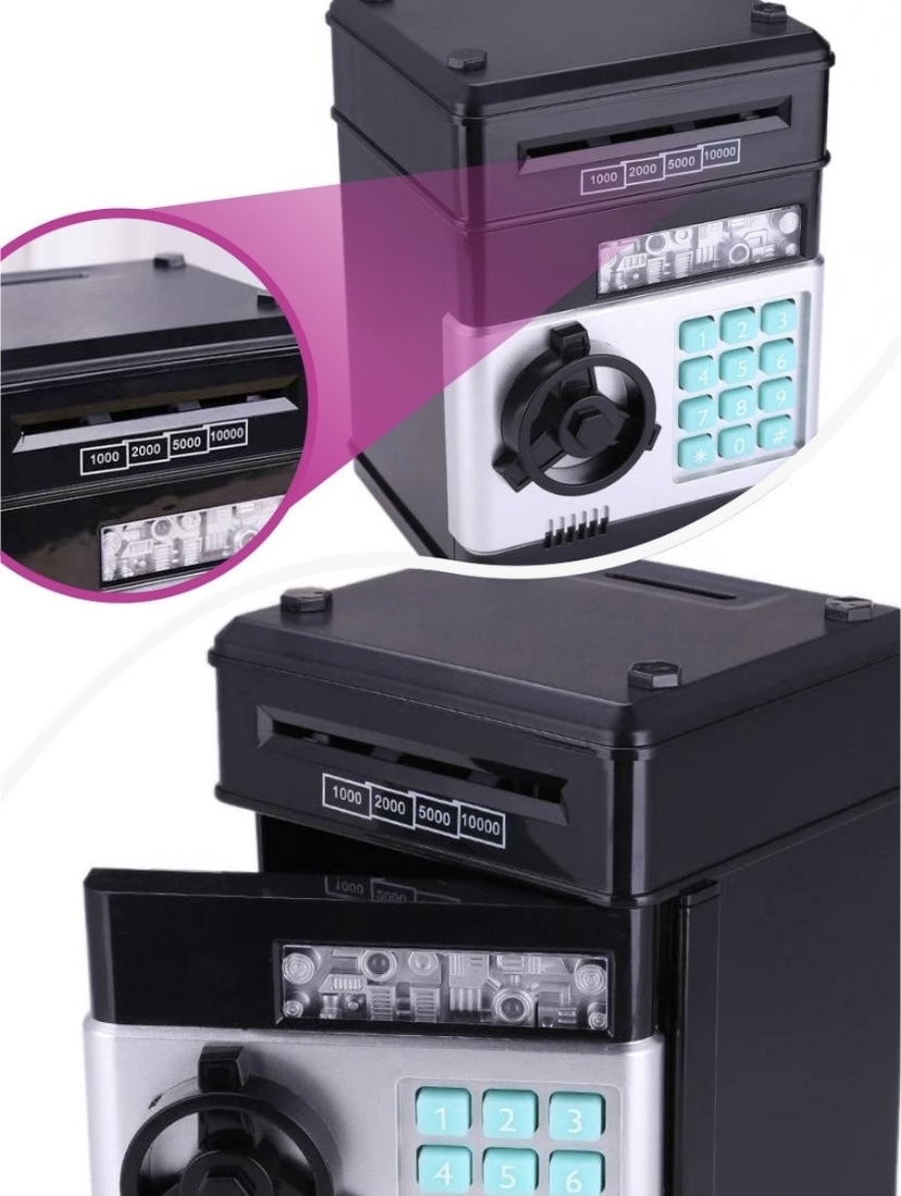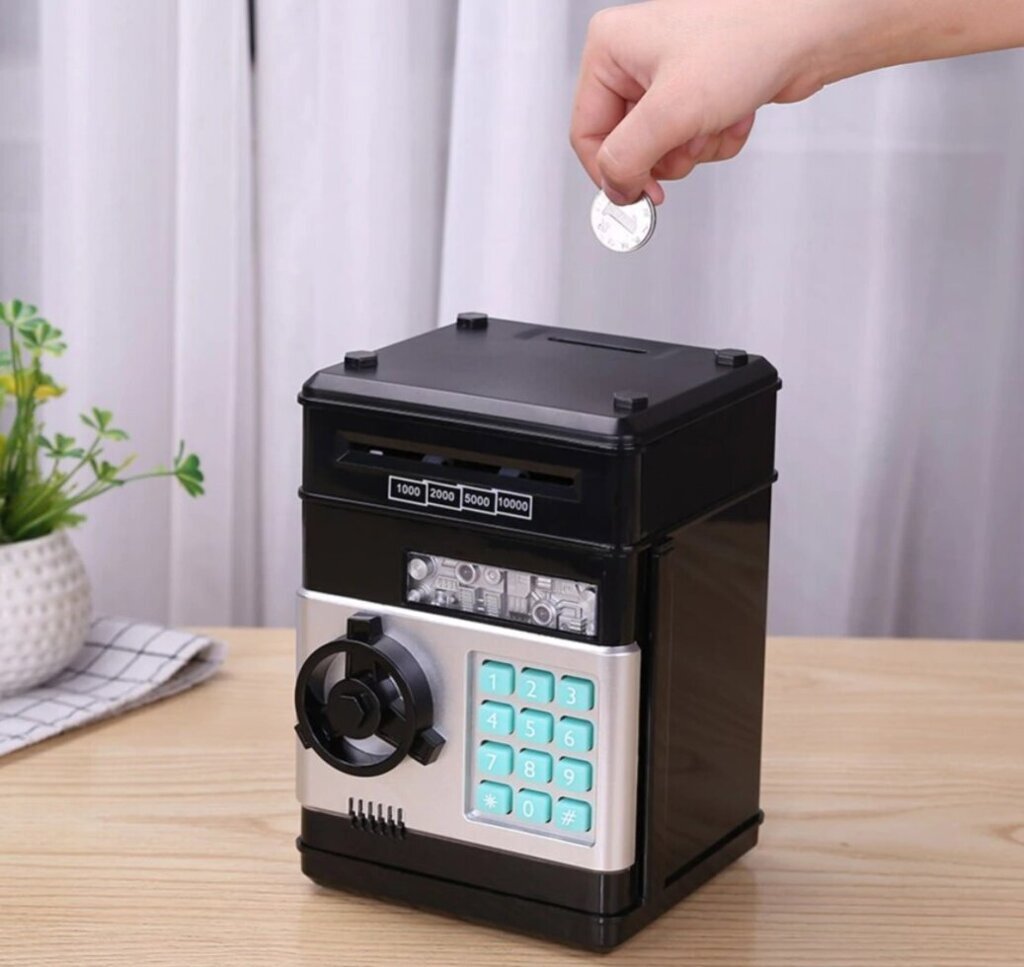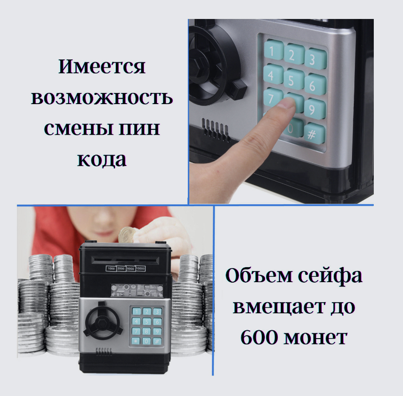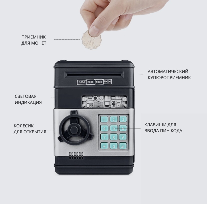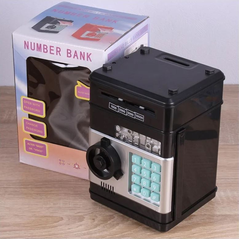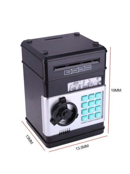 Копилка-сейф для денег / электронный банкомат с купюроприемником и кодовым замком, черный