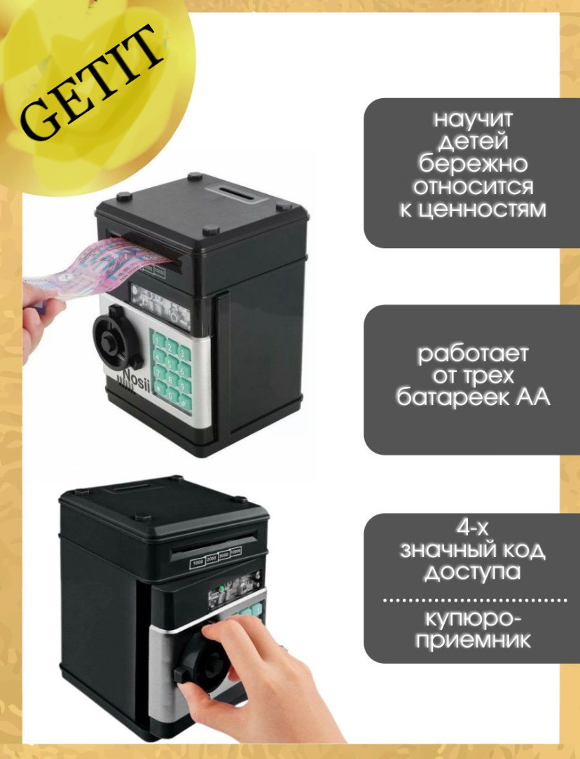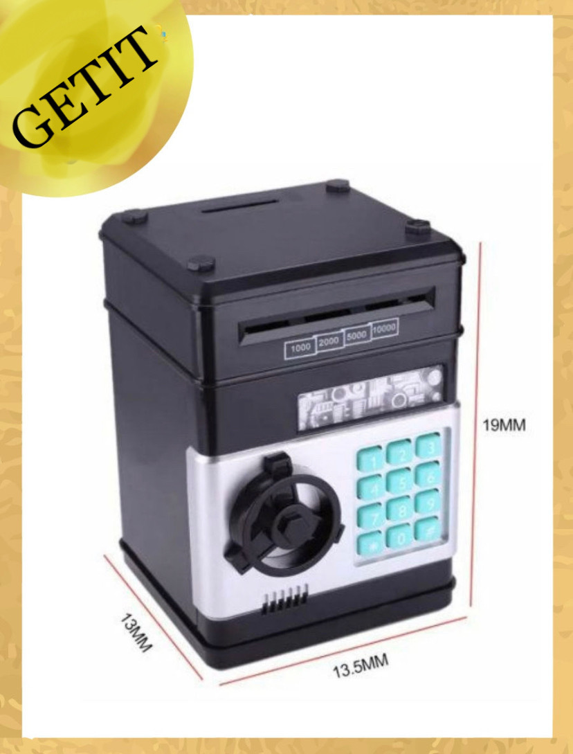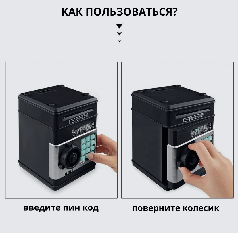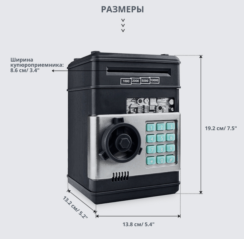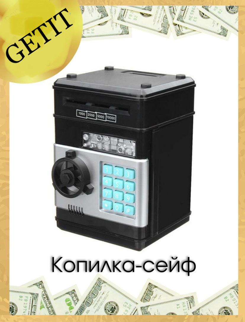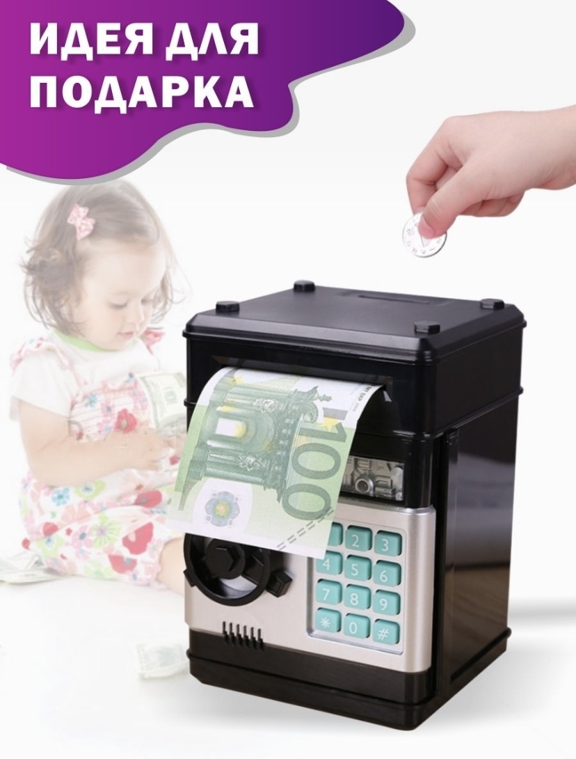 Копилка-сейф для денег / электронный банкомат с купюроприемником и кодовым замком, черный