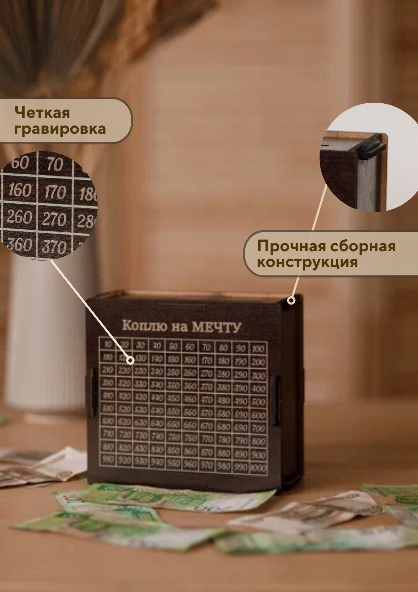 Интерактивная копилка, Копилка для денег "гравировка таблица с цифрами", 16х15 см, 1 шт