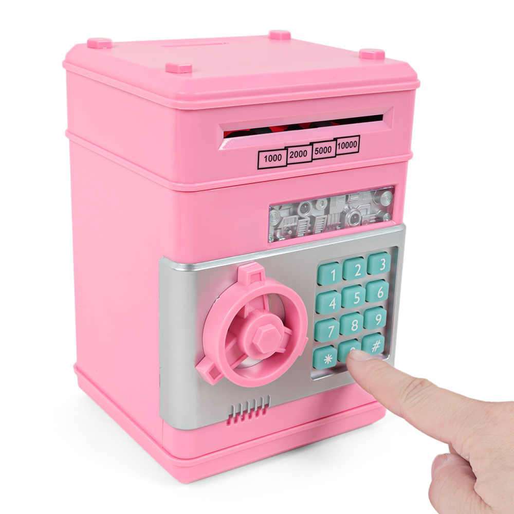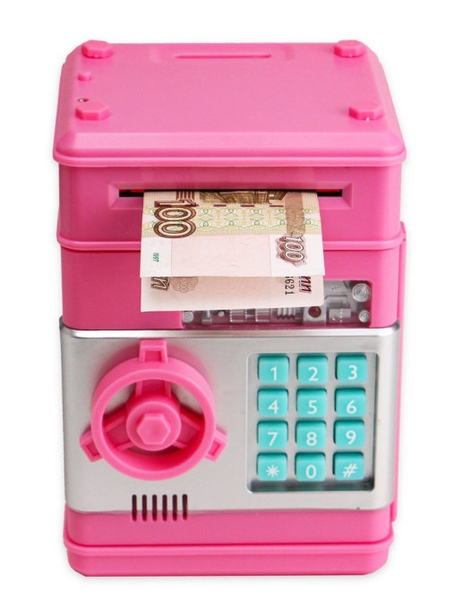 Копилка сейф электронная для денег с кодовым замком и купюроприемником, розовый