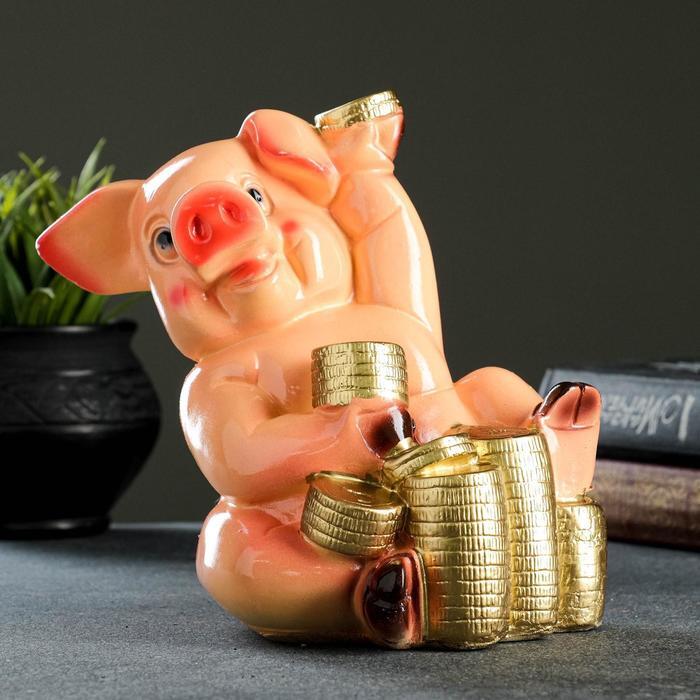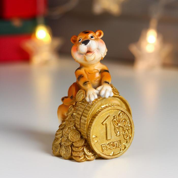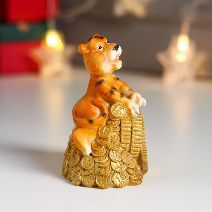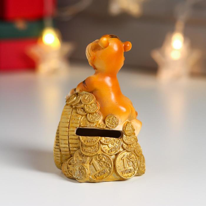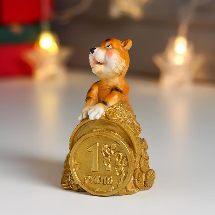 Копилка полистоун "Тигрёнок на горке золотых рублей" 10х6х6,8 см