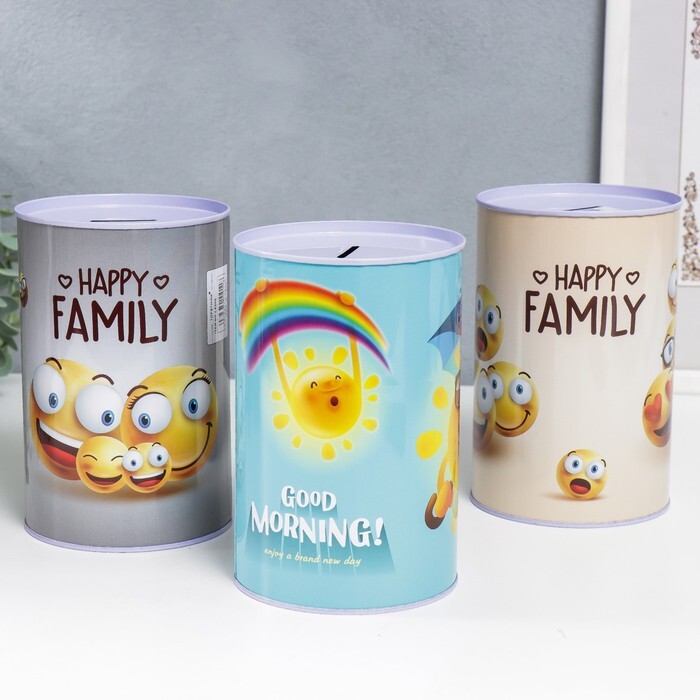 Копилка металл банка "Счастливые смайлы" МИКС 15,5х10х10 см