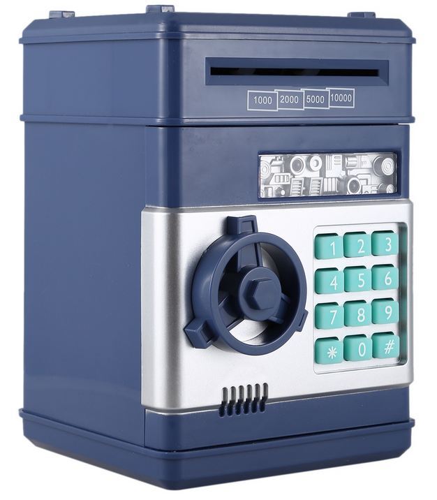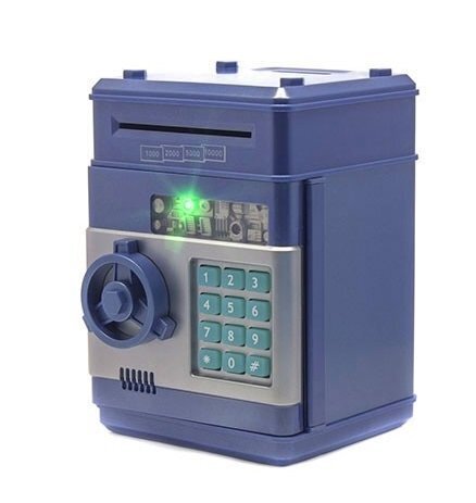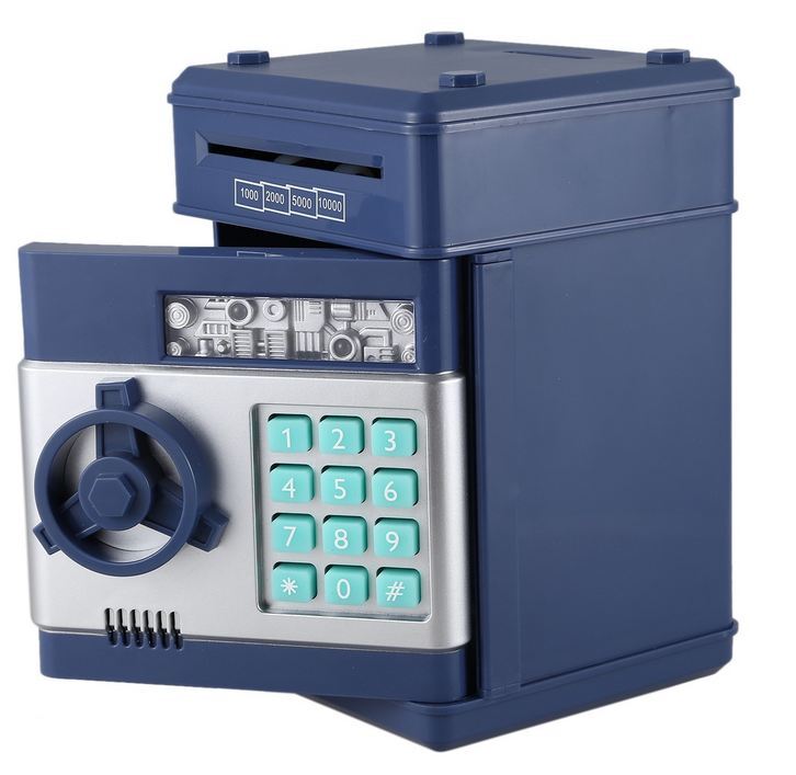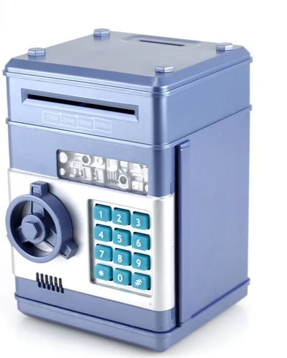 Копилка-сейф для денег / электронный банкомат с купюроприемником и кодовым замком, синий