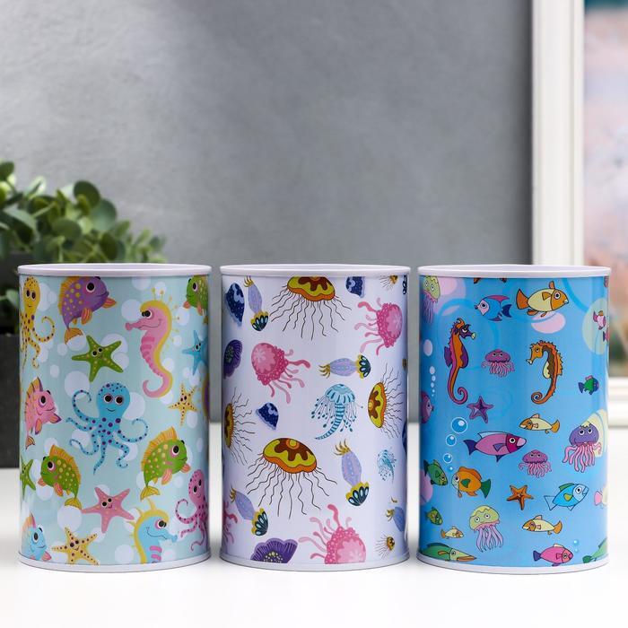 Копилка металл банка "Подводный мир" МИКС 12х8х8 см