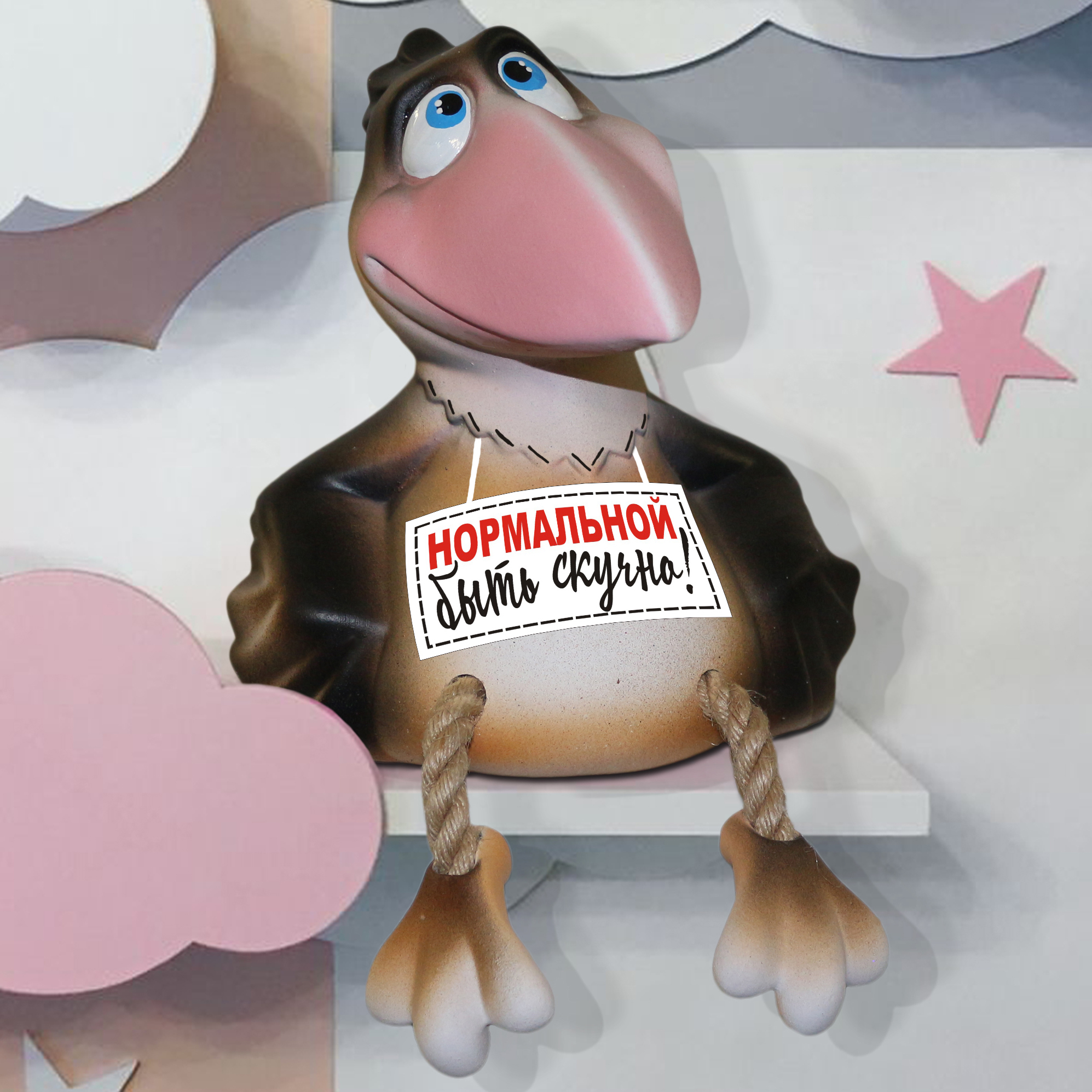 Копилка для денег керамическая. Прикол. "Ворона" 20 см. Бежевая.