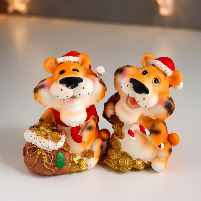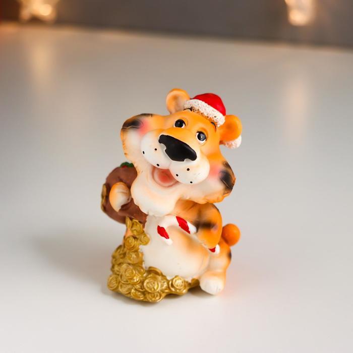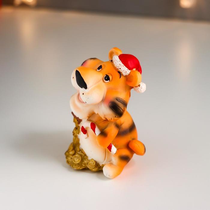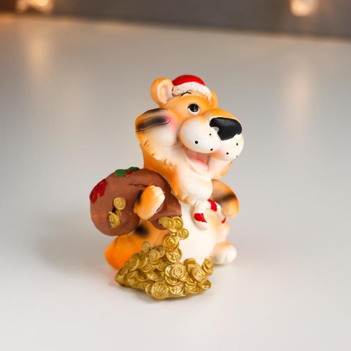Копилка полистоун "Тигр в новогоднем колпаке с золотом в мешке" МИКС 11х7х8,2 см